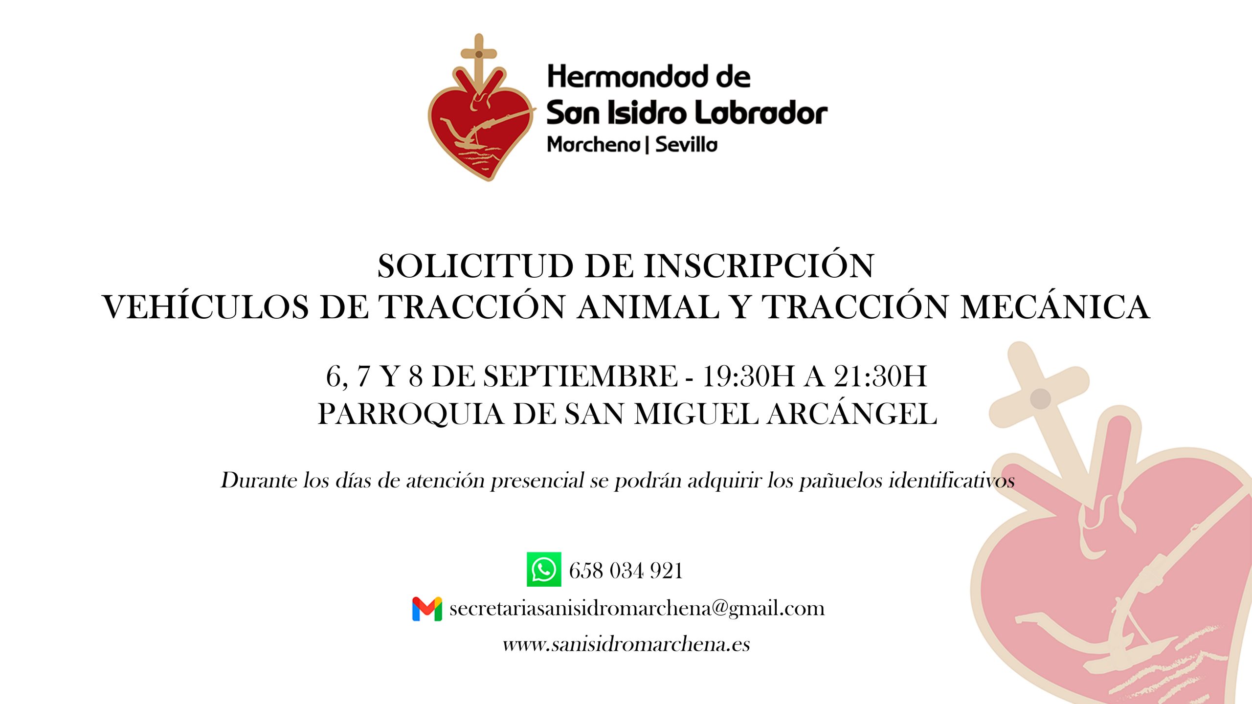 6, 7 y 8 de Septiembre de 19:30 a 21:30h en la Parroquia de San Miguel Arcángel.